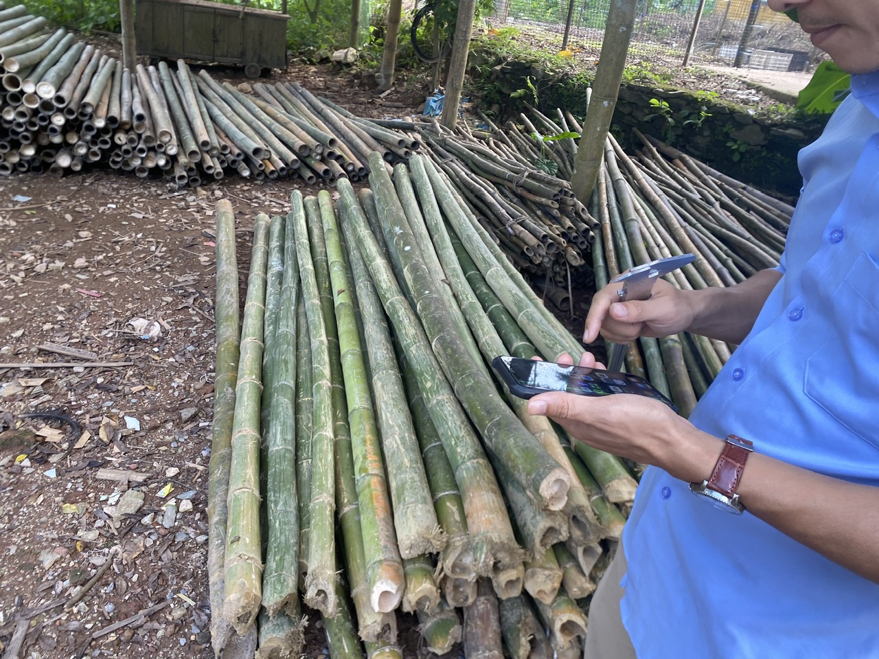 Bước 2: Tre được phân loại kích thước và phân loại thành từng đống ngay tại chân đồi